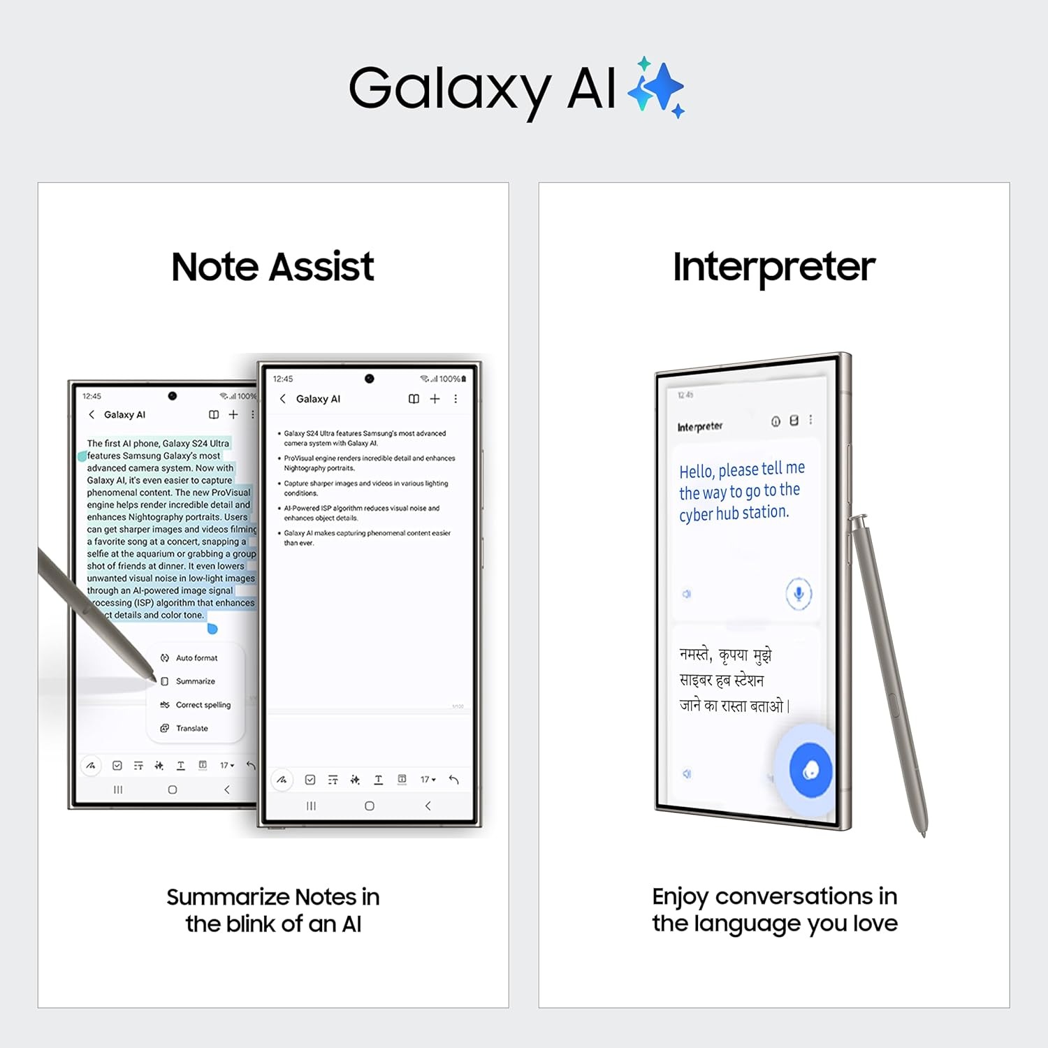 • Galaxy AI – Welcome to the era of mobile AI. With Galaxy S24 Ultra and One UI in your hands, you can unleash completely new levels of creativity, productivity and possibility.
